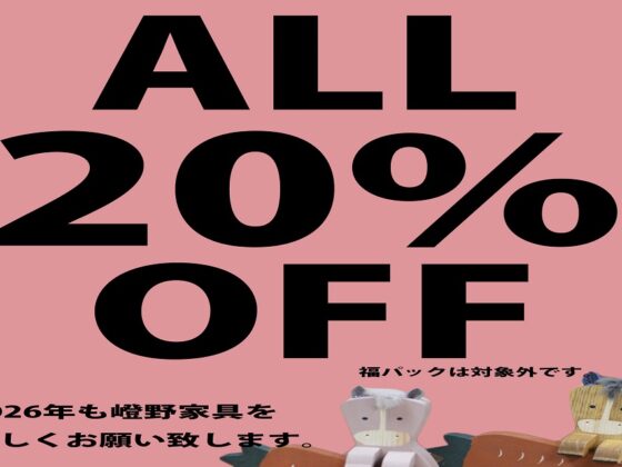 blog2025年もありがとうございました。スタッフJ2025年12月29日 皆さん、こんにちは。スタッフJです。 本日で嶝野家具の2025年度の営業は終了致しました。 2026年の初売りは1月3日10時~14時までとなります。 恒例となりました¥2.026・¥5.000・¥10.000の福パックをそれぞれ少数ですが御用意しております。 どうぞ2026年も嶝野家具を宜しくお願い致します。 皆様、良いお年を! それでは。 スタッフJ Previous Article blog 年末年始のお知らせ スタッフJ2025年12月26日 View Post