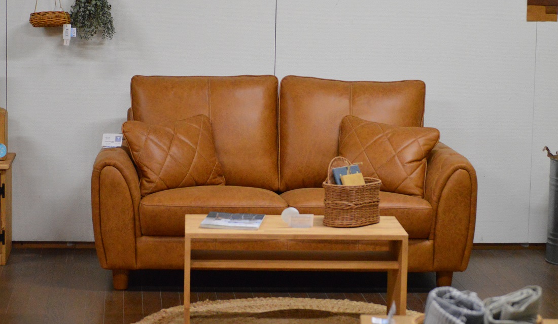 展示中のレザーテックスソファ2P。