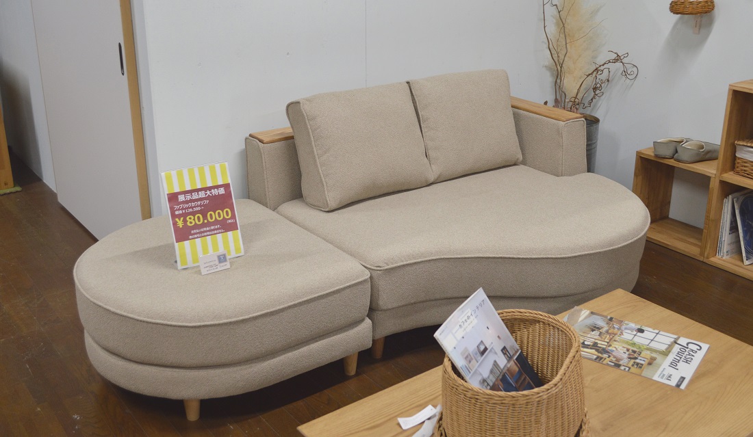 0.sale 3.sofa 家具一覧 ファブリックカウチ楕円ソファ*展示品大特価 スタッフJ2025年10月2日 楕円カウチソファ ファブリック サイズ:W2060×D810-1142×H830×SH380/¥126.500➡¥80.000! 材質:アッシュ材/ウレタンフォーム・シリコンフィル・ファブリック 奥行めっち…View Post
